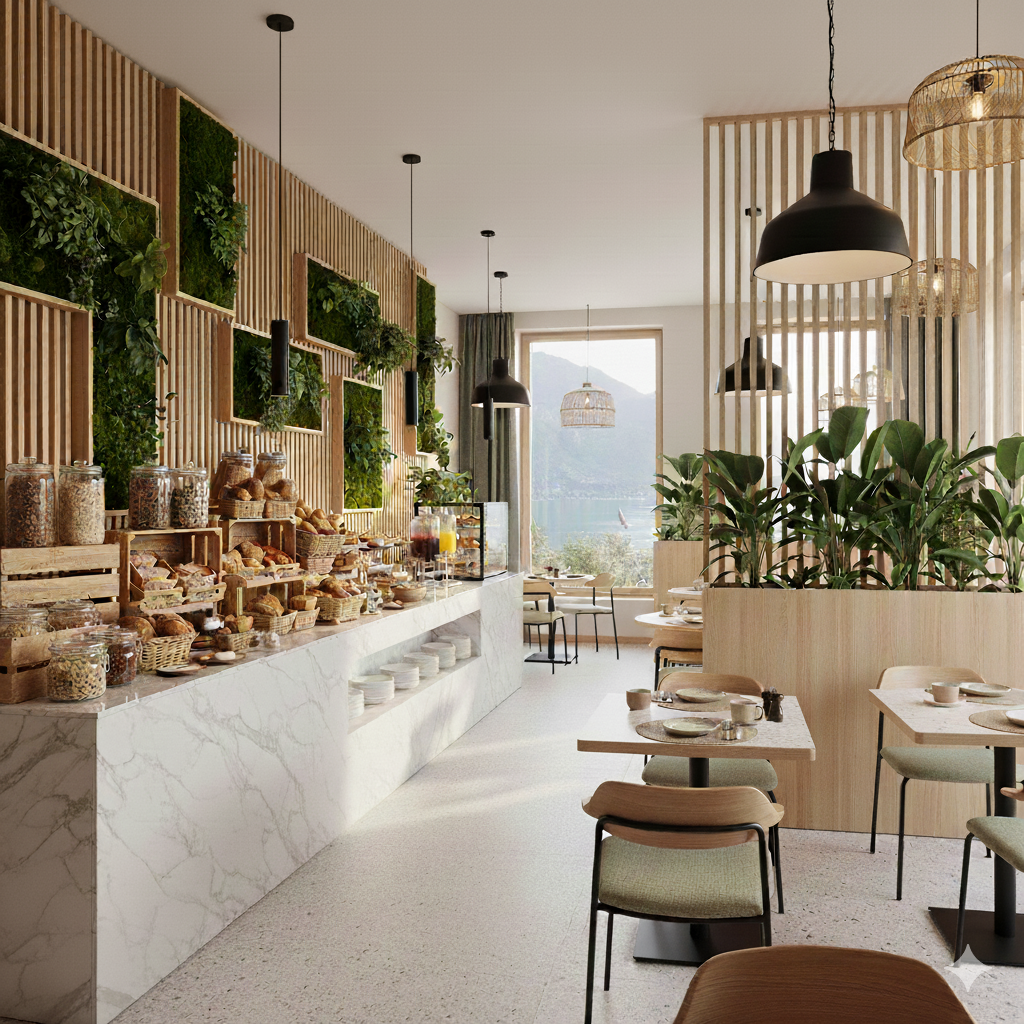 Le Restaurant des Quatre Rives est exclusivement consacré au petit déjeuner, imaginé comme une parenthèse de douceur avant de commencer la journée.